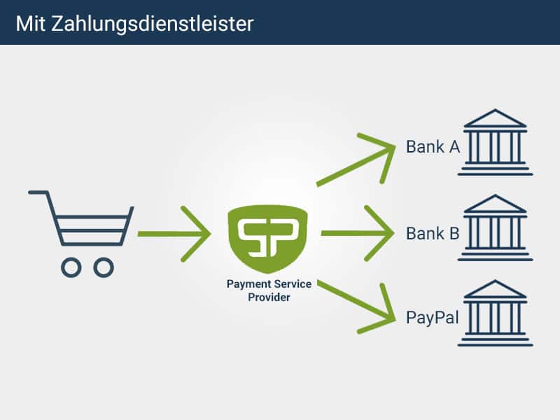 Der Payment Service Provider stellt Ihnen als Vertragspartner verschiedene Zahlungsmethoden aus einer Hand zur Verfügung. Mit minimalem organisatorischen Aufwand und nur einem Ansprechpartner können Sie Ihren Kunden so maximale Freiheit am Checkout bieten. Egal auf welchem Verkaufskanal: Der Zahlungsanbieter sorgt dafür, dass jeder Kunde seine bevorzugte Bezahloption aus einem breiten und aktuellen Mix wählen kann. Ein wichtiger Service, der für Umsatz und Kundenbindung sorgt: Zahlreiche Umfragen belegen, dass Kunden das Geschäft wieder verlassen oder gar nicht erst aufsuchen, wenn sie dort nicht so bezahlen können, wie sie wollen. Auch im Online-Shop führt ein Mangel an attraktiven Zahlungsmöglichkeiten oft zum Kaufabbruch.