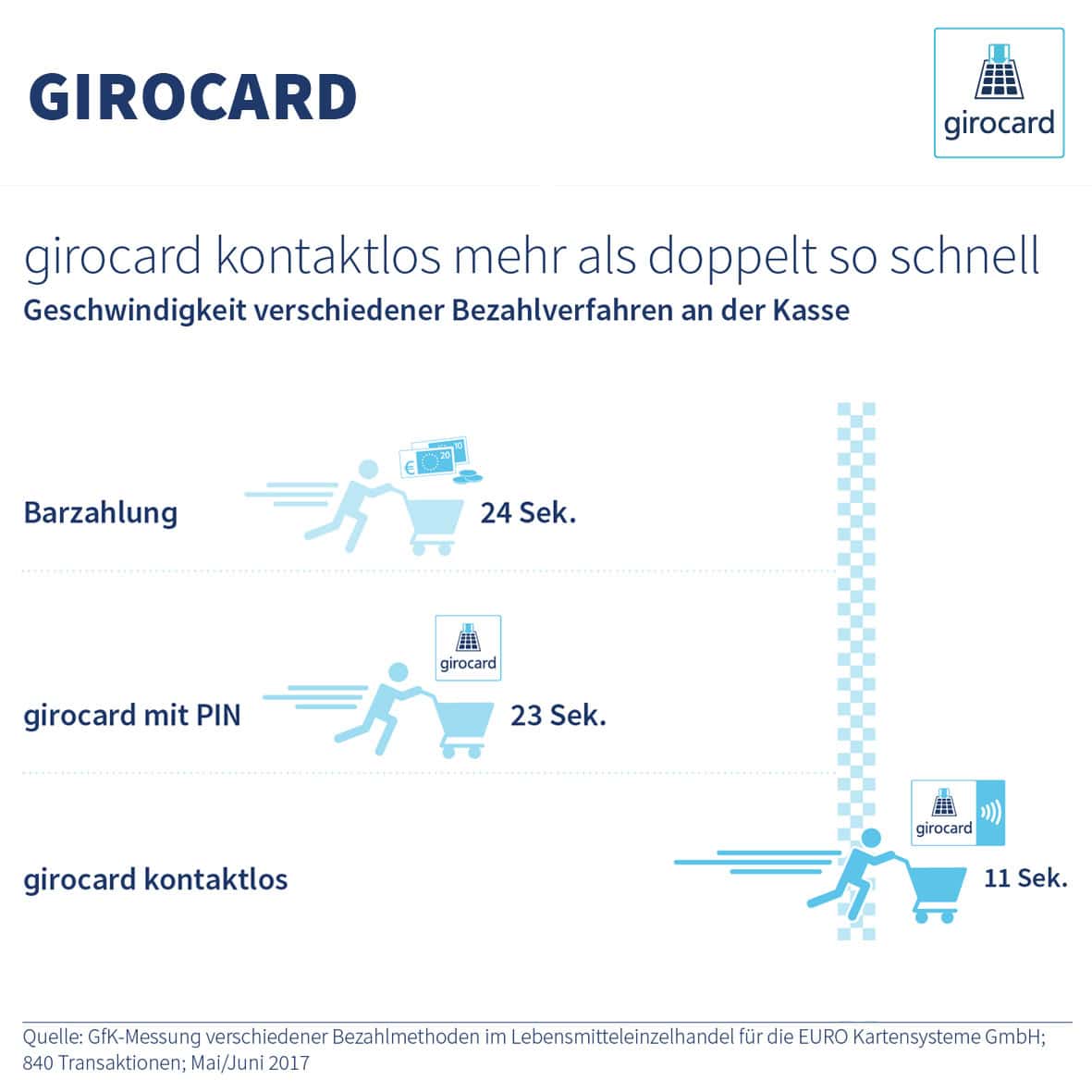 - In Deutschland befinden sich etwa 100 Millionen Girocard im Umlauf, davon unterstützen inzwischen rund 80 Millionen das kontaktlose Bezahlen.